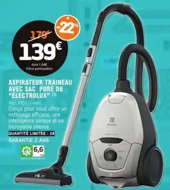 Actuellement en offre chez E.Leclerc : ASPIRATEUR TRAINEAU AVEC SAC PURE D8 “ELECTROLUX” ✅ Valable du 7-02 au 22-02.