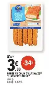 Actuellement en offre chez E.Leclerc : Assiette bleue - panés au colin d'alaska x5 ✅ Valable du 18-02 au 1-03.