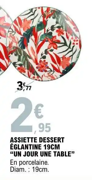 Actuellement en offre chez E.Leclerc : ASSIETTE DESSERT ÉGLANTINE 19CM “UN JOUR UNE TABLE” ✅ Valable du 29-12 au 11-01.