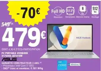 Actuellement en offre chez E.Leclerc : Asus - pc portable vivobook xt74qau-aucto4w ✅ Valable du 24-02 au 7-03.