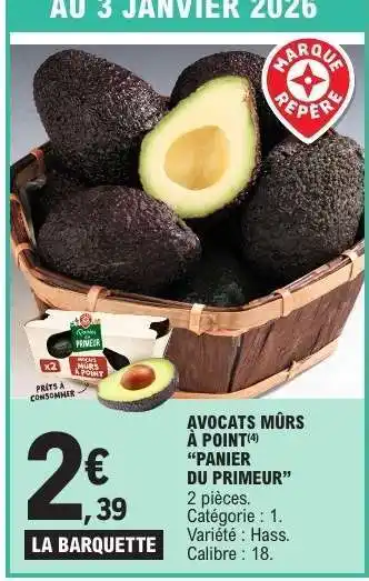 Actuellement en offre chez E.Leclerc : Avocats mûrs à point 'Panier du Primeur' ✅ Valable du 30-12 au 10-01.