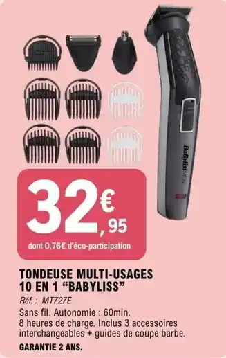 Actuellement en offre chez E.Leclerc : Babyliss - tondeuse multi-usages 10 en 1 babyliss ✅ Valable du 10-03 au 22-03.