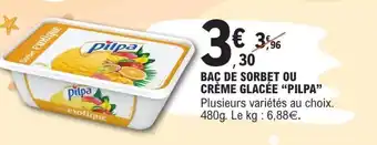 Actuellement en offre chez E.Leclerc : Bac de sorbet ou crème glacée 'Pilpa' ✅ Valable du 27-01 au 8-02.