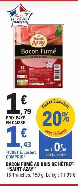 Bacon Fumé au Bois de Hêtre 'Saint Azay' : offres et promos E.Leclerc à découvrir