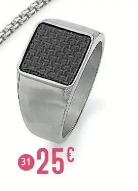 Actuellement en offre chez E.Leclerc : Bague chevalière en acier et carbone ✅ Valable du 27-01 au 14-02.