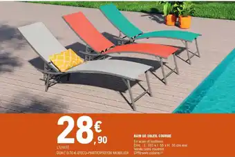 En plus de l'offre BAIN DE SOLEIL COURBE, E.Leclerc propose une large gamme de produits. Consultez le Catalogue E.Leclerc hebdomadaire pour découvrir les meilleures offres et promotions. En plus de BAIN DE SOLEIL COURBE, il y a aussi : BAIN DE SOLEIL, Bain de soleil & Bain de soleil.