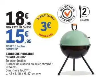 Actuellement en offre chez E.Leclerc : BARBECUE PORTABLE BEAUX JOURS ✅ Valable du 31-03 au 18-04.