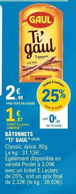 Actuellement en offre chez E.Leclerc : Bâtonnets 'Ti' Gaul ✅ Valable du 10-02 au 22-02.