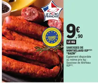 Actuellement en offre chez E.Leclerc : Bazin saucisses de montbéliard igp ✅ Valable du 24-02 au 7-03.