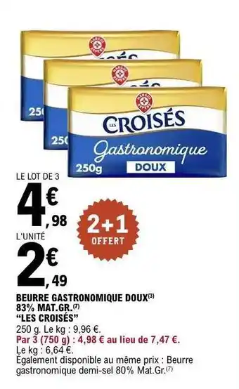 Actuellement en offre chez E.Leclerc : BEURRE GASTRONOMIQUE DOUX ✅ Valable du 3-02 au 14-02.