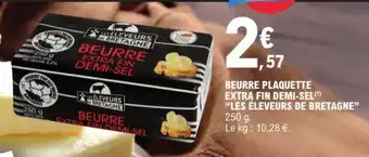 Offre BEURRE PLAQUETTE EXTRA FIN DEMI-SEL LES ELEVEURS DE BRETAGNE chez E.Leclerc