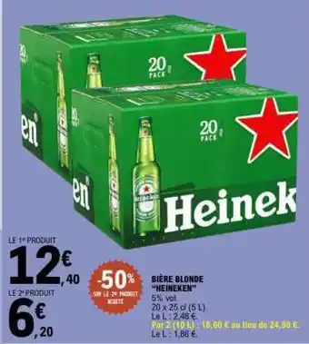 Actuellement en offre chez E.Leclerc : Bière Blonde Heineken ✅ Valable du 3-02 au 14-02.