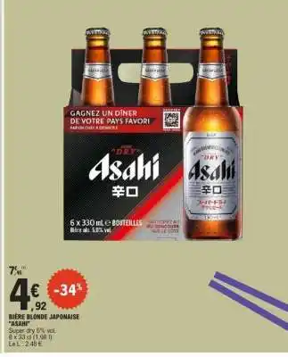 BIÈRE BLONDE JAPONAISE ASAHI offres et promotions en ligne chez E.Leclerc