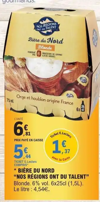 Actuellement en offre chez E.Leclerc : Bière du Nord 'Nos Régions Ont du Talent' ✅ Valable du 27-01 au 8-02.