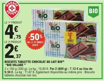 Actuellement en offre chez E.Leclerc : BIO VILLAGE Biscuits tablette chocolat au lait bio ✅ Valable du 13-01 au 24-01.