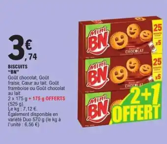 En plus de l'offre BISCUITS BN, E.Leclerc propose une large gamme de produits. Consultez le Catalogue E.Leclerc hebdomadaire pour découvrir les meilleures offres et promotions. En plus de BISCUITS BN, il y a aussi : Mini biscuits bn, Bn mini biscuits & BN Biscuits choco party.