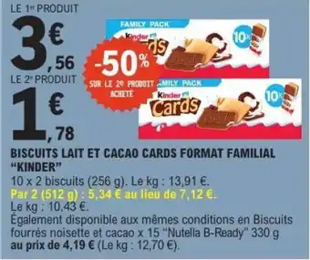 Offre Biscuits Lait et Cacao Cards Format Familial 'Kinder' chez E.Leclerc