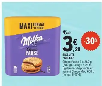 Actuellement, Biscuits 'Milka' est en promotion chez E.Leclerc. Toutes les informations utiles comme le prix, les conditions et la durée de validité sont affichées sur cette page. Consultez également les promotions similaires pour Biscuits 'Milka', afin de faire le meilleur choix. La promo Biscuits 'Milka' est valable du 21-04-2026 au 02-05-2026. Si elle est expirée, regardez les autres offres équivalentes. Vous pouvez aussi suivre cette catégorie de produit pour être alerté lorsqu’une nouvelle promotion Biscuits 'Milka' apparaît chez E.Leclerc.Questions fréquemment posées au sujet de Biscuits 'Milka'