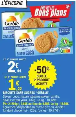 Actuellement en offre chez E.Leclerc : Biscuits sans sucres GERBLÉ ✅ Valable du 27-01 au 8-02.