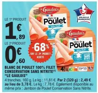 BLANC DE POULET 100% FILET CONSERVATION SANS NITRITE LE GAULOIS : offres et promos E.Leclerc à découvrir
