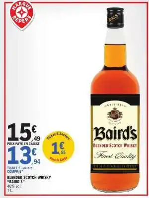 Actuellement en offre chez E.Leclerc : Blended Scotch Whisky 'Baird's' ✅ Valable du 17-03 au 28-03.