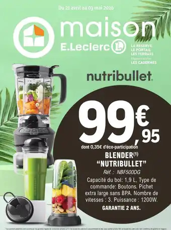 Actuellement en offre chez E.Leclerc : BLENDER NUTRIBULLET ✅ Valable du 21-04 au 3-05.