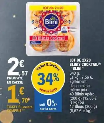 Actuellement en offre chez E.Leclerc : BLINI Lot de 2x20 blinis cocktail ✅ Valable du 23-12 au 3-01.