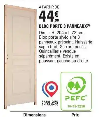 BLOC PORTE 3 PANNEAUX offres et promotions en ligne chez E.Leclerc
