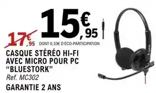 Actuellement en offre chez E.Leclerc : Bluestork - casque stéréo hi-fi avec micro pour pc ✅ Valable du 27-01 au 8-02.