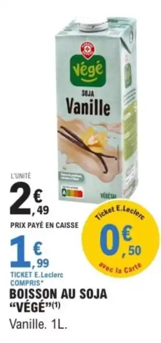 Boisson au soja végé offres et promotions en ligne chez E.Leclerc