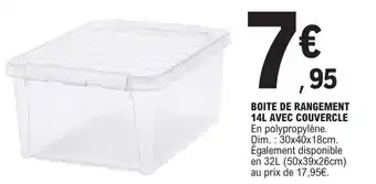 Actuellement en offre chez E.Leclerc : BOITE DE RANGEMENT 14L AVEC COUVERCLE ✅ Valable du 27-01 au 8-02.