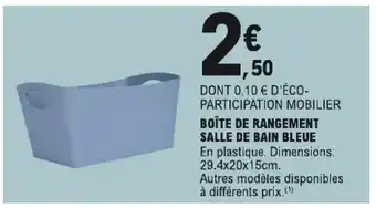 Actuellement en offre chez E.Leclerc : BOÎTE DE RANGEMENT SALLE DE BAIN BLEUE ✅ Valable du 13-01 au 24-01.