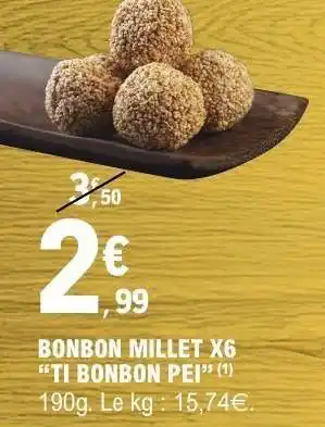 Actuellement en offre chez E.Leclerc : BONBON MILLET X6 “TI BONBON PEI” ✅ Valable du 10-02 au 22-02.