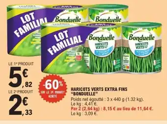 Actuellement en offre chez E.Leclerc : BONDUELLE Haricots verts extra fins ✅ Valable du 16-12 au 27-12.
