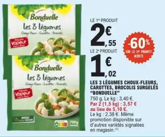 Actuellement en offre chez E.Leclerc : Bonduelle Les 3 Légumes ✅ Valable du 10-03 au 21-03.