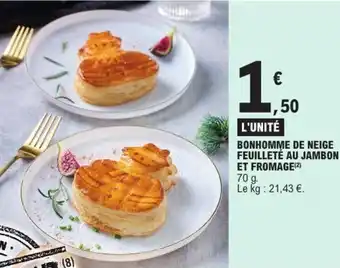 Actuellement en offre chez E.Leclerc : Bonhomme de neige feuilleté au jambon et fromage ✅ Valable du 16-12 au 27-12.