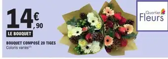 En plus de l'offre Bouquet composé 20 tiges, E.Leclerc propose une large gamme de produits. Consultez le Catalogue E.Leclerc hebdomadaire pour découvrir les meilleures offres et promotions. En plus de Bouquet composé 20 tiges, il y a aussi : Bouquet composé neige, Bouquet composé neige & Bouquet compose noel.