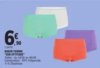 Actuellement en offre chez E.Leclerc : BOXER FEMME ZEN ATTITUDE ✅ Valable du 3-03 au 14-03.