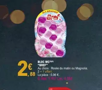 Le prix de l'offre BREF Bloc wc se trouve également en haut de la page, ainsi que la date à laquelle l'offre est disponible. Vous pouvez également vérifier les prix dans le Catalogue E.Leclerc actuel ou sur le site Internet de E.Leclerc. Les offres vous permettent d'acheter les produits E.Leclerc au prix le plus bas.