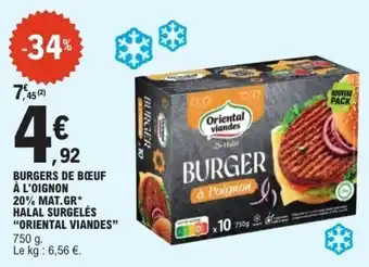 Actuellement en offre chez E.Leclerc : Burgers de bœuf à l'oignon 20% mat.gr halal surgelés oriental viandes ✅ Valable du 3-02 au 21-02.