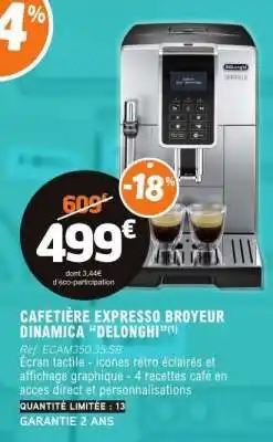 Actuellement en offre chez E.Leclerc : CAFETIÈRE EXPRESSO BROYEUR DINAMICA “DELONGHI” ✅ Valable du 7-02 au 22-02.