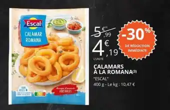 En plus de l'offre CALAMARS À LA ROMANA, E.Leclerc propose une large gamme de produits. Consultez le Catalogue E.Leclerc hebdomadaire pour découvrir les meilleures offres et promotions. En plus de CALAMARS À LA ROMANA, il y a aussi : CALAMARS À L'ARMORICAINE, Calamars à l'armoricaine & Pinsa romana à garnir.