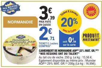 Actuellement en offre chez E.Leclerc : CAMEMBERT DE NORMANDIE AOP ✅ Valable du 20-01 au 31-01.