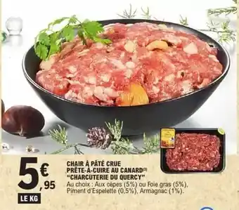 Actuellement en offre chez E.Leclerc : Canard - chair à pâté crue prete-a-cuire au ✅ Valable du 20-01 au 31-01.