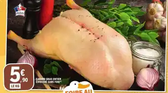Actuellement en offre chez E.Leclerc : CANARD GRAS ENTIER ÉVISCÉRÉ SANS FOIE ✅ Valable du 10-02 au 21-02.
