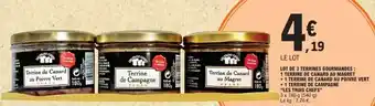 En plus de l'offre Canard - le lot, E.Leclerc propose une large gamme de produits. Consultez le Catalogue E.Leclerc hebdomadaire pour découvrir les meilleures offres et promotions. En plus de Canard - le lot, il y a aussi : Lot de 2 magrets de canard du sud-ouest tranchés delpeyrat, Mousse de canard pur canard & Lot de 3 lot de 3 boîtes.
