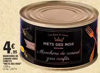 En plus de l'offre Canard - manchons de gras confits, E.Leclerc propose une large gamme de produits. Consultez le Catalogue E.Leclerc hebdomadaire pour découvrir les meilleures offres et promotions. En plus de Canard - manchons de gras confits, il y a aussi : MANCHONS DE CANARD GRAS CONFITS METS DES ROIS, Canard - 4 manchons de confits & 4 manchons manchons de canard confits.