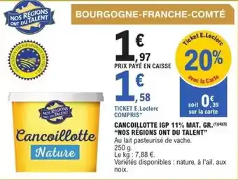 Actuellement en offre chez E.Leclerc : Cancoillotte nons régions ont du talent ✅ Valable du 30-12 au 10-01.