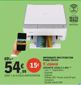 Canon PIXMA TS4151I offres et promotions en ligne chez E.Leclerc