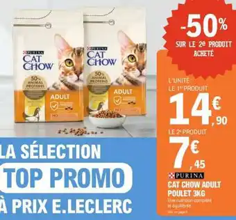 Actuellement en offre chez E.Leclerc : CAT CHOW ADULT POULET 3KG ✅ Valable du 28-04 au 9-05.